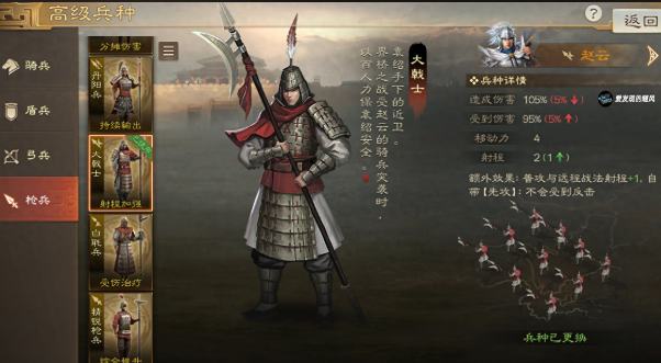 大部分特种兵通过消耗特定武将兑换,例如白马义从需公孙瓒传承,无当飞军需王平传承。平民玩家应优先兑换通用性强的兵种,如白马义从的先攻效果适用于多种阵容。兵种强度还受统领武将属性影响,例如张郃统领大戟士时可提升触发概率,因此需尽量让适配武将担任统领角色。资源有限时建议专注培养2-3种核心兵种,避免分散投入导致战力不足。