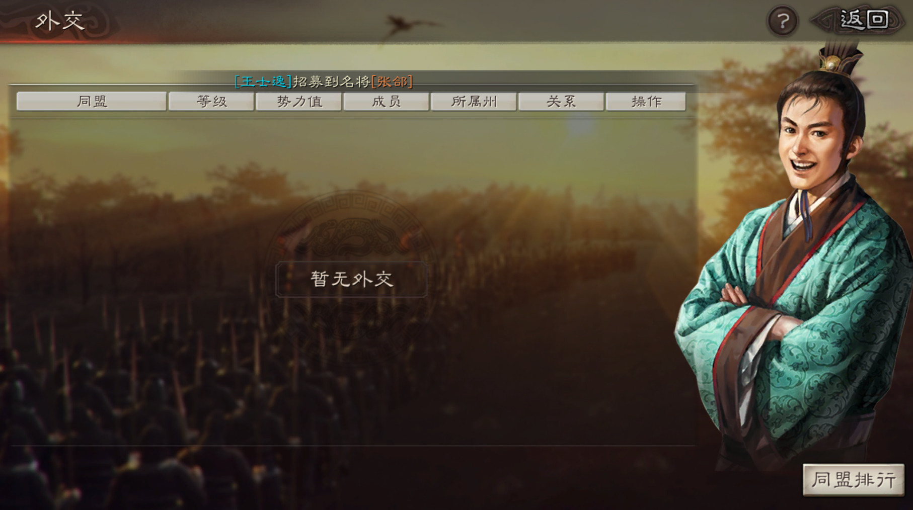 外交官的另一项重要任务是维护同盟的信用值。信用是同盟长期发展的基石,任何失信行为都可能对同盟声誉造成不可逆的损害。外交官在制定策略时必须具备长远眼光,避免因短期利益而损害同盟的信用。外交官还需与其他同盟保持良好沟通,通过合纵连横的方式削弱敌对势力,甚至吸收潜在盟友或侠客军成员,进一步增强同盟实力。