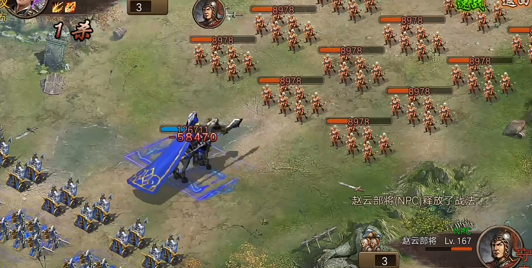 赵云是主力输出,烛龙套装的爆发能力能快速清理残血敌人。他的战法七进七出和龙枪傲世是翻盘关键,尽量在敌方血量较低时释放,确保打出最大伤害。如果赵云能触发乱舞效果,战斗基本稳了。副将建议带司马懿,反弹敌方战法能有效削弱对手。