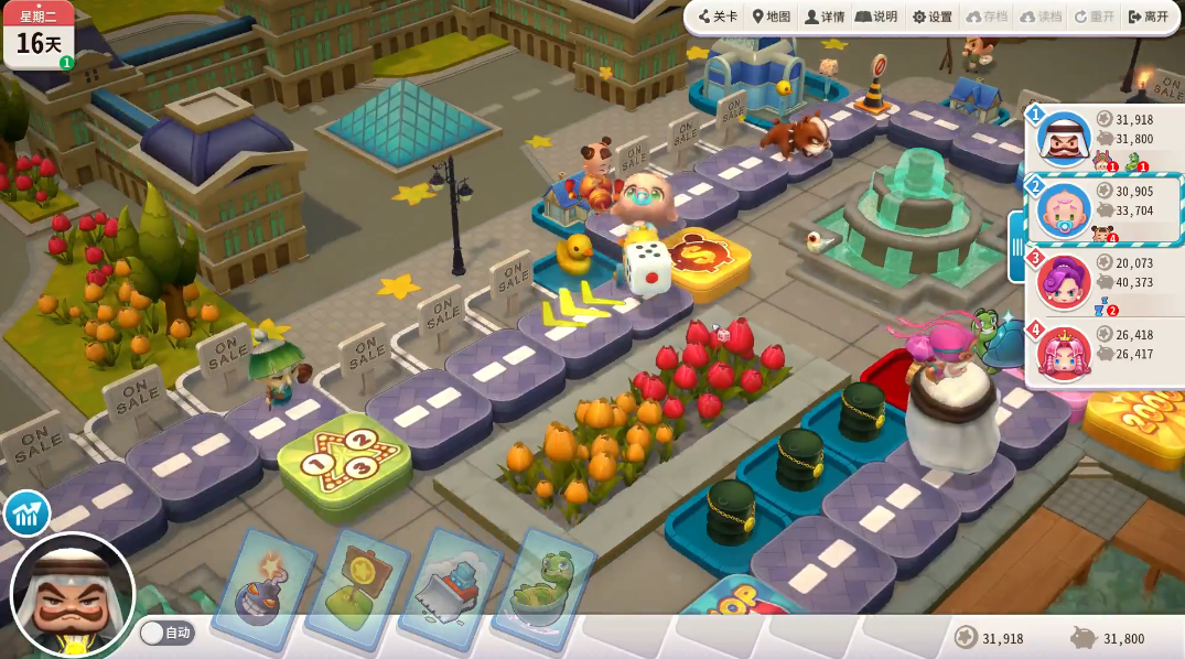 舞美拉的强势点集中在骰子控制和卡片获取。初始自带遥控骰子能精准规划移动路线,遇到送卡格时额外获得一张卡片的特性,大幅降低被动事件风险。传送卡的存在让她能快速切入关键区域,无论是抢占地产还是规避陷阱都游刃有余。这种高机动性在热斗模式中尤为突出。