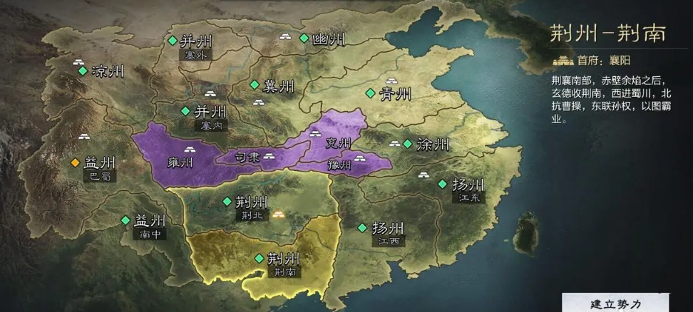 出生地的选择直接影响整个赛季的发展节奏和战略空间。游戏提供九个可选出生州,包括幽州、冀州、并州、凉州、青州、徐州、扬州、益州和荆州,而中央区域的司隶、雍州、兖州、豫州四个资源争夺州不开放初始选择。选择时需综合考虑地理位置、资源总量和竞争强度三大要素,其中州面积越大意味着资源地和人口容量越多,但同时也可能面临更激烈的竞争。