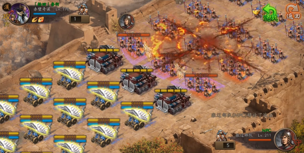 硬件方面,2红甲是必备的,它能大幅提升生存能力。如果没有红甲,副本难度会高很多。战车护甲和火力也要尽量达标,否则在面对高攻NPC时会很吃力。珍宝等级建议至少9.0,再低的话输出和防御都会不够。如果发现NPC战法后的那排特别难打,可以尝试让关羽或周泰提前放战法打断节奏。黄月英的喷火车如果能保住,对后期的输出帮助很大。