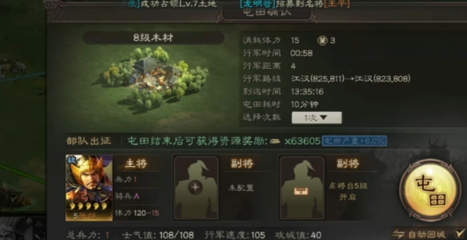 打地之前一定要先侦查,了解守军兵种和阵容,用克制的队伍去打能减少战损。新手期体力消耗低,趁这段时间多打高级地,等能稳定打3级地后就开始屯田。土地等级越高,屯田收益越大,所以尽量占高级地再屯。名声值到3500解锁屯田功能后,资源获取会轻松很多,这时候可以适当放弃低级地,腾出位置占更高级的资源地。