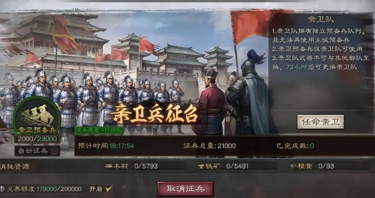 刚进入游戏时,咱们得先跟着主线任务走,主线让建啥就建啥,千万别手痒乱点。前期资源紧张,乱升级容易卡进度,主线任务会给不少资源奖励,能保证咱们平稳度过开荒期。优先把君王殿升到4级,解锁点将台后就能上阵第三个武将,统御值提升后打地更轻松。仓库看情况升,如果资源快爆仓了再点,不然会影响其他建筑的升级节奏。
