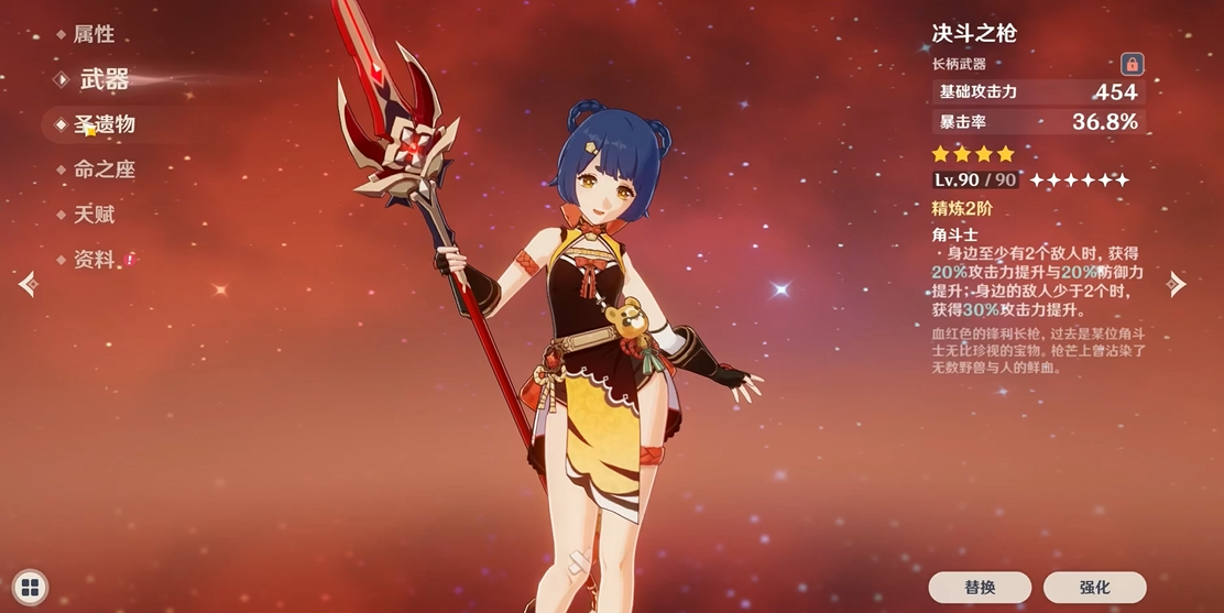 爆伤长枪是提升角色输出的重要武器类型,尤其适合依赖暴击伤害的主C或副C角色。爆伤长枪通常具备较高的基础攻击力,并通过副属性或被动效果提供暴击伤害加成。这类武器的选择需结合角色特性、队伍搭配以及获取难度综合考虑。目前游戏内较为知名的爆伤长枪包括五星武器和璞鸢、护摩之杖,以及四星武器黑岩刺枪、决斗之枪等。