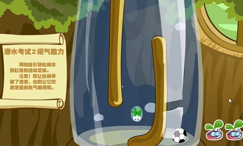 第一关和第二关都是拼图,难度不高,只要细心观察就能轻松完成。如果拼图失败,系统会自动重新开始,所以不用太紧张。重点在于第三关的闭气挑战,这里需要用方向键控制拉姆穿过障碍物拿到足球。注意不要连续按同一个方向键超过两次,否则泡泡会破掉。建议每次按键后稍微停顿,观察拉姆的位置再继续移动,避免撞上黄色管子或墙壁。