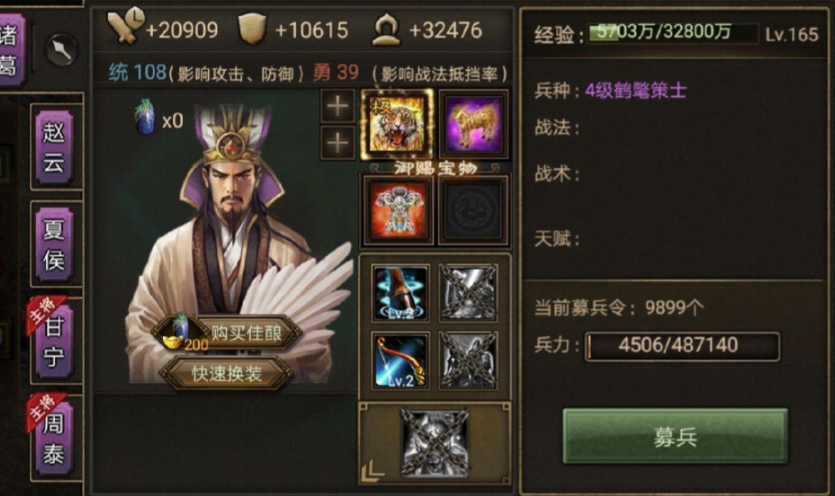 过184级的诸葛亮副本,首先得确保你的诸葛亮等级达到165级,并且已经完成了四个将的觉醒,这样诸葛亮的觉醒键才会显现。觉醒诸葛亮需要花费不少资源,第一次宝石觉醒要2000,之后每次递增到4000额度,杜康酒和屠城石也是必备的消耗品。觉醒后的诸葛亮在闪避和控场能力上有显著提升,尤其是面对低级武将时能完全闪避战法伤害,但对貂蝉、赵云这类特殊战法的效果有限。