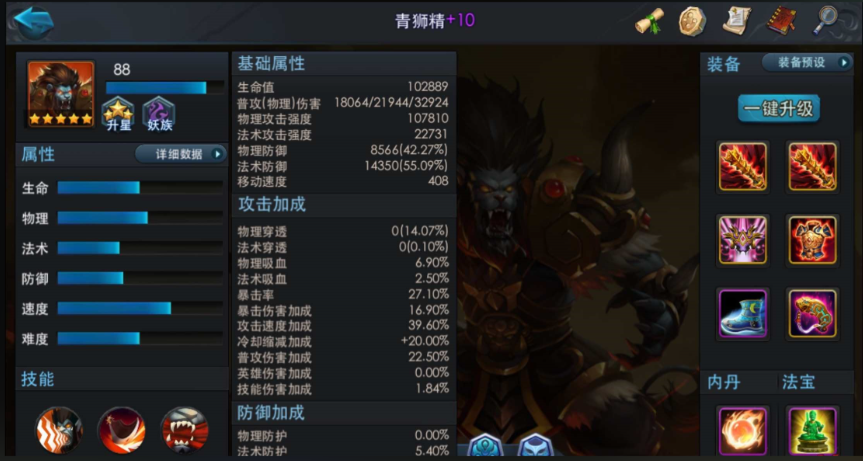 青狮精领衔的破甲流阵容在对抗法师队伍时展现出特殊优势。青狮精的普攻附带减防效果,配合菩提祖师的法术增益或魍魉的辅助能力,能快速瓦解敌方防御体系。这类阵容对装备依赖度相对较低,可将更多资源投入生存属性提升,形成兼具消耗与爆发的战术体系。其核心思路是通过持续施加破甲效果,逐步削弱敌方战斗力。