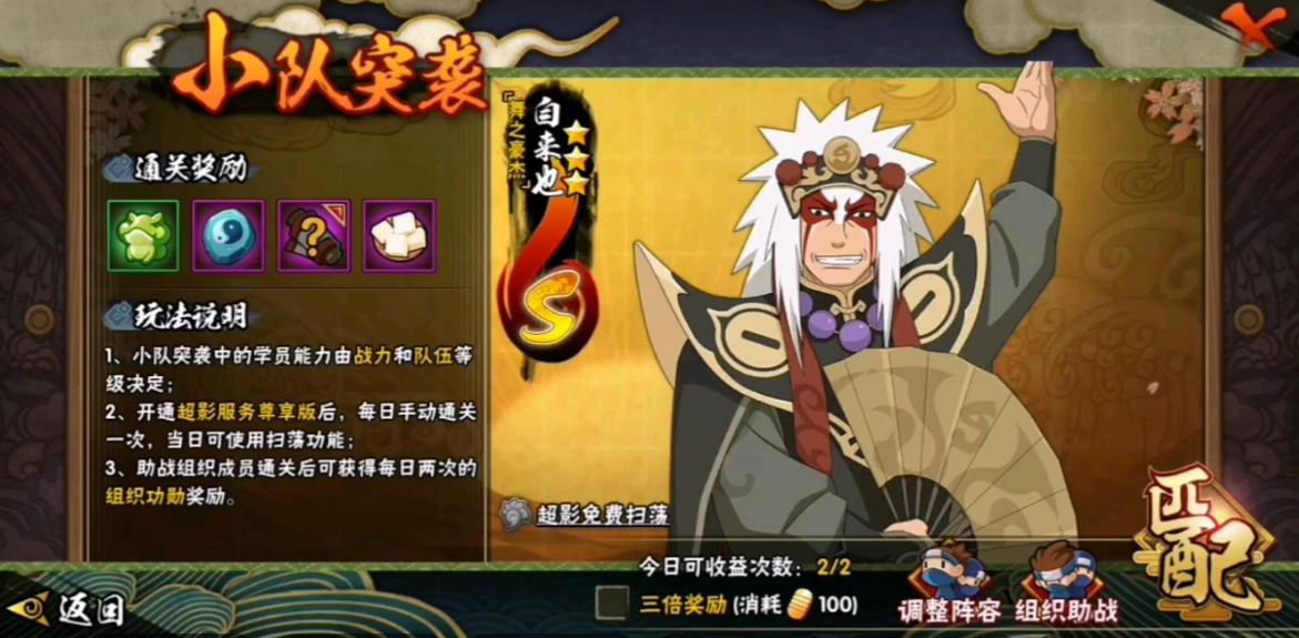 获取密卷碎片的主要途径包括小队突袭和决斗场段位赛。小队突袭是日常任务中产出碎片最多的玩法,建议每天优先完成,使用三位忍者挑战千代婆婆等BOSS时,花费100金币可获得三倍奖励。开通超影服务后还能一键扫荡节省时间。决斗场段位赛对操作要求较高,但升段奖励包含密卷碎片和忍者碎片。限时活动如秘境组队也是重要来源,组队通关12次可获得45个碎片。