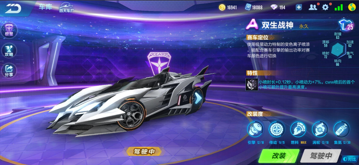 钻石A车一直是大家追求的目标,毕竟它们的性能和手感都相当出色。目前来看,综合性能最强的钻石A车当属双生战神,这辆车不仅拥有顶级的小喷动力和氮气延续能力,而且在腾空地图中表现尤为突出。它的特性让它在竞速赛中能够轻松保持领先优势,尤其是在连续弯道和飞跃路段,几乎无人能敌。虽然它的集气稍微弱一点,但通过合理的改装和操作技巧完全可以弥补这一点。