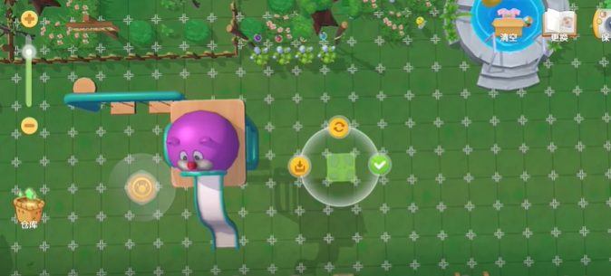 首先在地面上放一块圆石板,然后在圆石板上铺一层地板砖。这一步很重要,因为地板砖能确保后续操作顺利进行。接着在圆石板旁边放上简约紫藤花架,注意花架的突出部分要对准圆石板的位置。放好花架后,再把想要浮空的家具放到花架上方。这时候家具已经处于悬空状态了,但还需要最后一步调整。