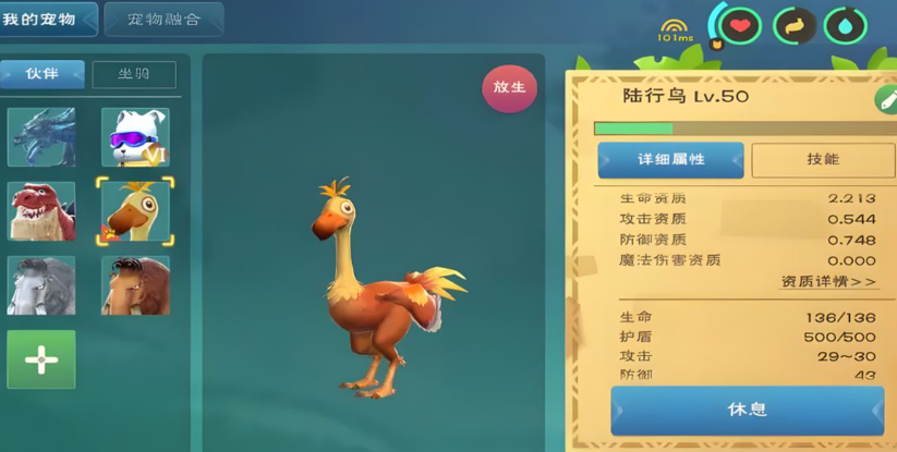 捕捉鸵鸟需先将其攻击至残血状态,再用木棒击晕,随后喂食饲料直至驯服成功。注意避免使用高伤害武器导致鸵鸟死亡,推荐使用弓箭控制血量。驯服后的鸵鸟可通过家园宠物栏进行饲养,定期生产羽毛,但需提前准备编制框并等待约12小时。