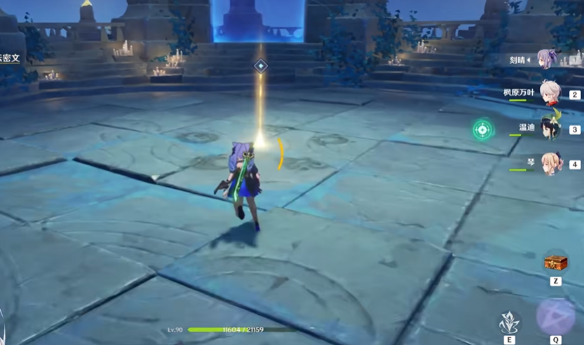 接下来需要按照动画中键纹亮起的顺序,依次触碰周围对应图案的蓝色透明墙壁。触碰成功后墙壁上的图案会亮起,同时你会被传送回场地中央。这里要注意,即使传送过程中被打断也不要紧,只要确保按正确顺序点亮图案就行。如果顺序错了图案不会亮起,需要从头开始重新触碰。