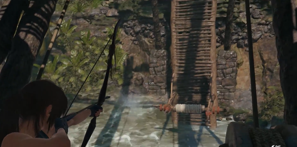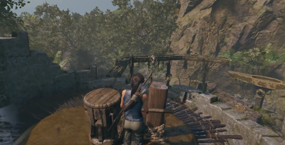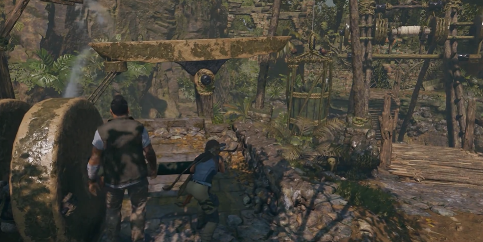 在秘鲁丛林断桥处,玩家需要利用水利机关将木桥升起。首先来到断桥前,根据人物对话提示前往水塔顶部开启排气阀。沿着石轮后方的木梯攀爬至塔顶,拉动开关启动水塔运作。水流会注入下方机关,但需进一步操作才能完成桥梁修复。