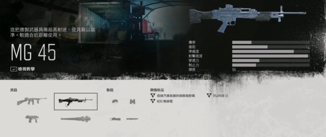 往日不再MG45作为游戏中的三级轻机枪,其定位介于过渡武器与主力装备之间,适合应对中小规模尸潮。该武器以高载弹量和较快射速为核心优势,尤其在近距离对抗中表现稳定,但受限于精度与单发伤害,面对高强度敌人时需依赖战术配合。获取途径主要通过温泉营地信任度达到3级后购买,或在中期剧情任务中从敌人处缴获。
