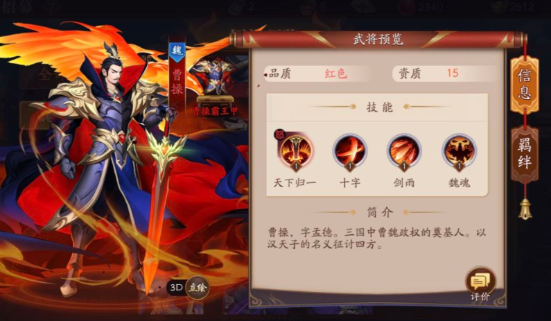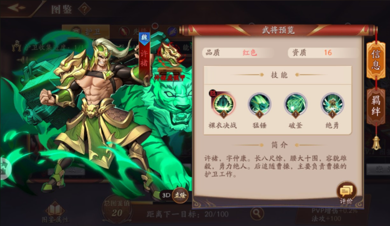 平民玩家可选用曹操、典韦、许褚、甄姬、蔡文姬的性价比组合,通过甄姬的聚怪与曹操的增伤打出连锁效果。竞技场中建议搭配刘备提供免控光环,弥补魏国控制链的空白。面对群雄阵营时,需调整夏侯惇为前排核心以应对高爆发伤害。