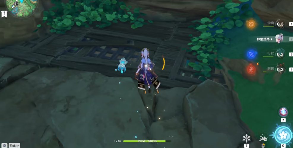 进入影向山地牢,首先需要传送到影向山的传送点。从空中往下看会发现一个很深的洞穴,这就是入口。朝着洞口飞下去时要借助老树根跳跃,建议使用体型较小的角色操作会更方便。起跳后往左边飞,能在悬崖峭壁上发现一个缝隙,只有矮个子角色能钻过去。