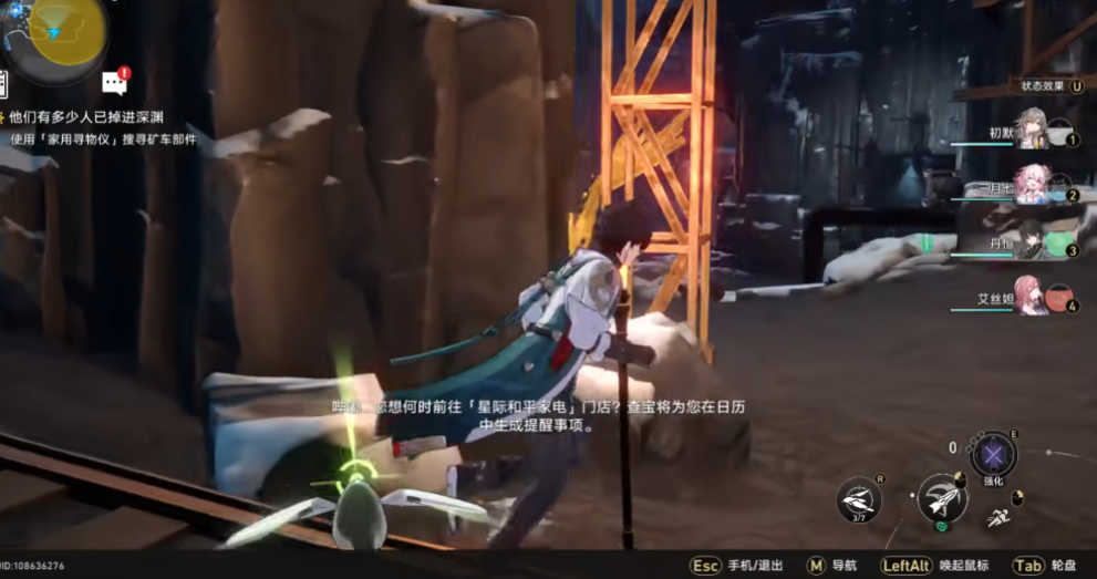 寻找第一个零件时,玩家需前往悬崖边缘,靠近宝箱后使用调查功能即可获取矿车销子。第二个零件的搜索过程稍显复杂,需要先激活藏珍之蕾·拟造花萼(金),随后在其对面位置使用R键触发指引。跟随提示来到藏珍之蕾旁,最终在矿车后方发现目标。这一过程要求玩家注意环境细节,尤其是光线变化与交互提示。