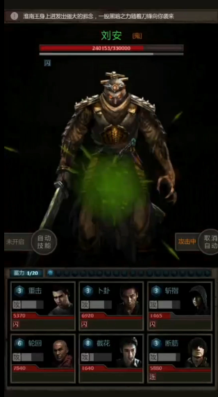 刘安作为长生劫第四章南洋古墓的最终BOSS,具有33万血量和两个特殊技能,其战斗机制对阵容配置与战术执行有较高要求。该BOSS会释放折斩技能对血量最低目标造成流血伤害,同时具备链接技能使两名角色共享伤害,若处理不当可能导致团队快速崩盘。战斗前需优先破坏场景内两个祭坛,每破坏一个可减少两波小怪,总计能避免四波战斗,显著降低通关难度。