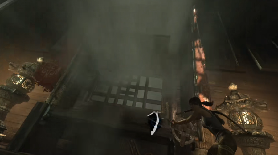通过机关区域后迎来BOSS战,击败敌人会解锁三道锁链封印的金色大门。每道锁链对应独立的开关谜题,分布在大殿不同角落。第一个开关位于左侧廊柱暗格,需用弓箭射击悬挂的重物触发;第二个开关藏在二楼破损地板下,需点燃油桶炸开障碍;第三个开关需要解开水流导向谜题,通过转轮改变浮台位置才能触及。所有开关激活后,最终的古墓丽影谜题才会显现。