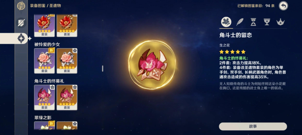 对于已有冗余五星圣遗物的玩家,可通过合成台进行三换一转换定向获取角斗士部件。这种方式虽需消耗大量资源,但能有效解决特定部位缺失的问题。在刷取过程中建议优先保留主词条为攻击百分比、暴击率或暴击伤害的圣遗物,副词条则侧重双暴和攻击力加成。由于角斗士套装效果仅对近战武器角色生效,远程角色或元素反应型输出并不适合此配置。