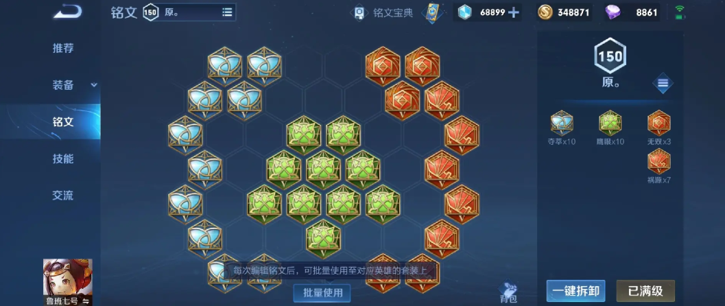 铭文的搭配对鲁班前期发育至关重要,红色建议选择无双来提升暴击伤害,绿色携带鹰眼以增加物理穿透,蓝色推荐夺萃和狩猎的混合搭配,比如七个狩猎和三个夺萃,这样能平衡攻速、移速和吸血效果,让他在线上更持久。整体上铭文要突出暴击率、攻速和吸血属性,这样能让他对线更强势,团战时也能持续输出。