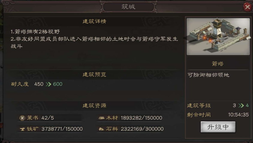 你还需要了解箭塔触发战斗后的一些具体细节,比如箭塔打人虽然疼,但消灭敌人是不会给你带来个人战功的,它的核心价值在于消耗和拖延,用它来磨掉高战玩家的体力或者打掉那些过来拆建筑的器械队伍非常划算,另外箭塔自己是不回血的,被打掉耐久只能重建,所以保护好箭塔不让它被集火快速拆掉很重要,通常需要主力部队在附近驻守协防。