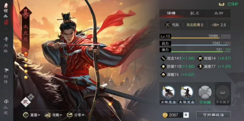 要玩好这套阵容,首先得认清两位武将的定位。太史慈在这里是绝对的核心输出,他的攻击距离有4,经常能直捣对方大营,追求在前几回合通过爆发完成爆头击杀。一切配置都要围绕如何让他更稳定、更猛烈地出击来展开。小乔的定位则是核心辅助与控制增强器,她的作用不仅仅是提供一些治疗或增益,更关键的是其技能可能带来的控制效果拓展,为太史慈创造更好的输出环境。这种搭配放弃了传统搭配中常见的强力减伤或恢复武将,走的是以攻代守、控制制胜的险棋,非常依赖前几回合的发挥,一旦技能顺利发动,就能快速解决战斗。