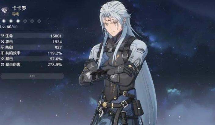 如果队伍缺乏输出,卡卡罗是一个优秀的主c选择。卡卡罗是雷属性角色,拥有多段攻击和高伤害,适合作为主要输出。他在前期缺少主c的情况下能大大提升队伍强度,并且到了后期也可以作为副c使用。卡卡罗的输出能力在常驻角色中属于顶尖水平,尤其适合与吟霖等角色搭配以进一步提升伤害。卡卡罗的普通攻击和大招能造成三段斩击和位移效果,打怪时手感流畅,帮助新手快速清理敌人。