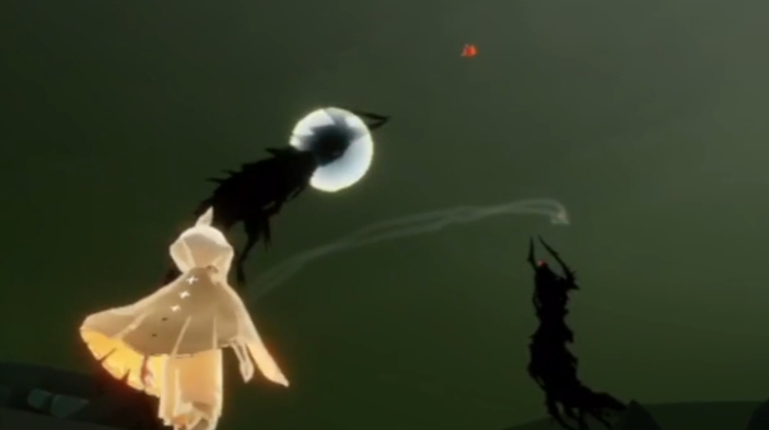 那些被称为冥龙的黑色生物是环境塑造的关键。它们绝非仅是背景装饰,其头顶发出的扫描红光与随之而来的猛烈撞击,构成了此区域最核心的动态威胁机制。被锁定并撞击会导致玩家辛苦收集的光之翼掉落,这直接关联到角色的成长与能力,使得每一次踏入墓土都需保持警惕。这种危险并非无意义的惩罚,它强制玩家学习观察环境、规划路径,将单纯的跑图转化为一场充满紧张感的生存挑战,从而极大地丰富了墓土这一关卡的探索深度与情感体验。