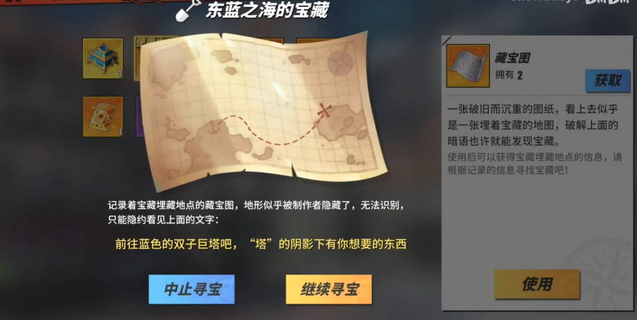 成功挖掘宝藏后,这个关于东蓝之海的宝藏的藏宝图任务就完成了。你可以顺带留意一下海军基地周围,比如生活区餐馆后巷或者一些房屋阴影处,有时会有额外的气球奖励或隐藏道具可以收集,能拿到一些黄金之果之类的资源。