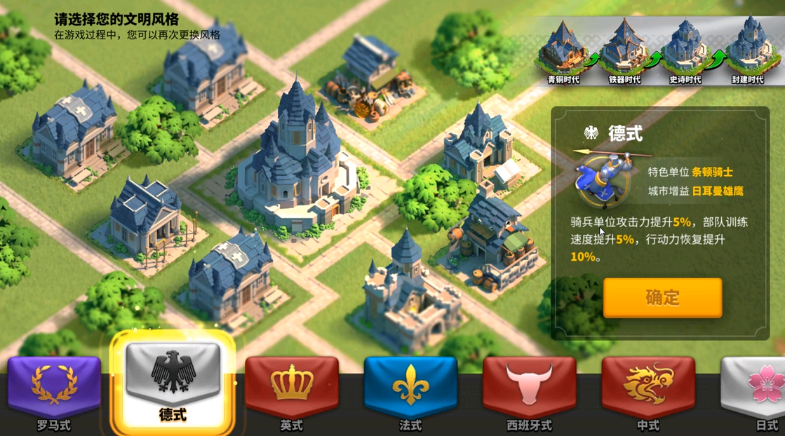德意志文明适合偏好骑兵作战且有一定投入意愿的玩家选择,其骑兵攻击力提升5%和部队训练速度提升5%的组合在中期开始发力。行动力恢复速度10%的加成为全文明最高,便于持续进行野蛮人讨伐等行动。该文明的训练加速效果在KVK前置爆兵阶段价值显著,但需要玩家具备较好的资源管理能力。初始将领海尔曼作为弓兵将领实用性相对有限,这是选择该文明时需要考虑的权衡点。