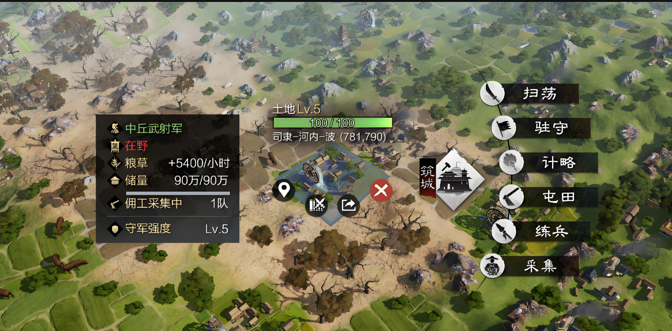 初期每次出征只消耗10点体力,免战牌失效后会增加到20点。建议在免战牌生效期间尽量把占领的地块都换成3级地。屯田时可以同时派遣多支部队到同一地块,士兵数量越多,屯田耗时越短。注意不同兵种的资源消耗差异,弓兵侧重木材,骑兵需要更多铁矿,步兵则消耗较多粮草。