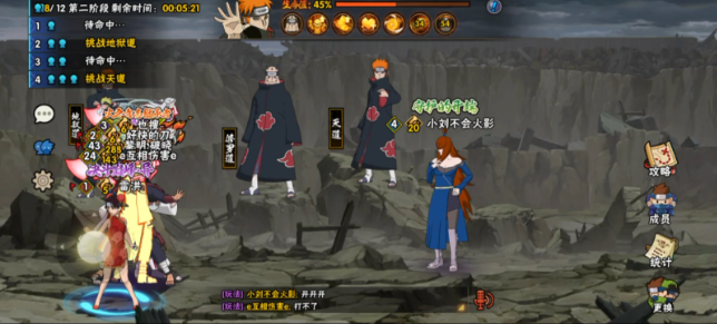 在团队副本中,佩恩侵略玩法需要10位小伙伴分工合作。第一阶段重点是营救村民,建议选择范围攻击型忍者,比如秽土三代或照美冥,他们的群体技能能快速清理人偶。记得使用土流壁秘卷抵挡畜生道召唤的翼龙攻击。救人达到一定数量后就会解锁首领关卡,这时候要优先击败修罗道、畜生道和小南,为后续战斗减轻压力。