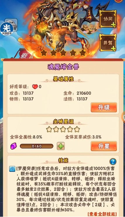 魏国坐骑的协同效果也是阵容构建的关键。蛟龙与麒麟的组合能提升全队攻击力,适合以爆发输出为主的阵容;而大象与凤凰的搭配则偏向防御,可为团队提供稳定的生存保障。坐骑的星级培养同样重要,低星阶段优先提升主力坐骑如蛟龙,达到三星后可解锁关键机制,而蝎子等坐骑需高星才能发挥完整效果。资源有限时,应集中培养核心坐骑,避免分散投入导致战力提升缓慢。