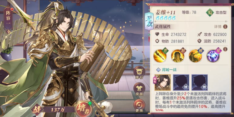 硬件配置需注重均衡发展,将魂录主抗灭蜀属性,阵法采用方圆提升生存能力。需注意姜维体系与脏水队的节奏差异,前者追求快速爆发,后者擅长持久战,调和两者需精确把控姜维的启动时机。当战区环境以抗队为主时,此混合体系能发挥较高上限,但需持续优化武将练度与灵宠星级以应对版本变迁。