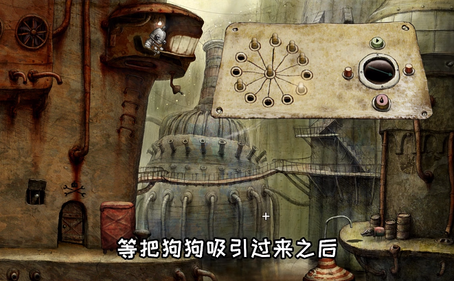 接下来需组装枪支,将获得的零件组合成完整的手枪。枪支组装完成后,前往控制台操作油罐。将绿色指针调整至指定位置,按下顶部按钮使油罐移动至机械狗所在区域并滴油。机械狗会被油吸引并靠近油滴位置,玩家需迅速使用组装好的手枪对准机械狗射击,注意点击目标为狗而非其他机器人。