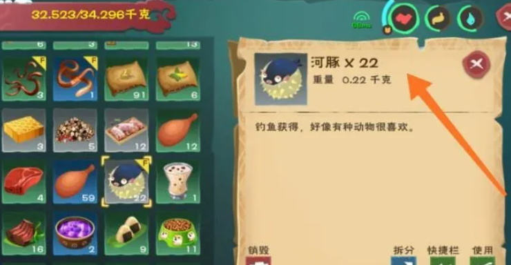 小麦和玉米作为基础作物,可通过种植或野外采集获得。小麦在七里香平原等区域分布广泛,玉米则集中在银月丘陵、暖风谷等热带雨林地带。两种作物均需在工作台以5:1的比例加工成饲料包,未加工的原始作物无法直接用于合成。河豚需使用钓竿在淡水区域垂钓,推荐君子河、郁金香平原附近的河流,使用蚯蚓作为鱼饵可提高获取效率。