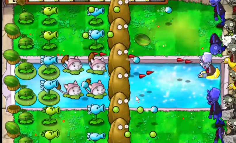 用剩余阳光在泳池两侧种满双发豌豆射手,配合火炬树桩让伤害翻倍。如果遇到铁桶僵尸或路障僵尸,记得及时用樱桃炸弹救场,但别浪费在普通僵尸身上。别忘了给高坚果套上南瓜头,防止被矿工僵尸偷袭。这个阶段要保持耐心,别因为僵尸数量增多就乱用阳光。
