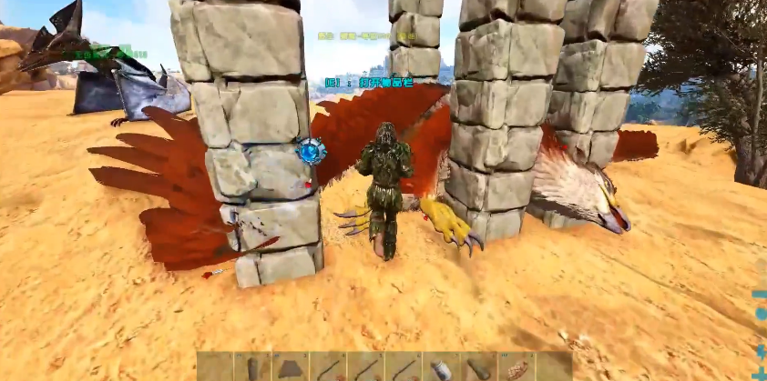 驯服狮鹫的关键在于准备合适的工具和掌握技巧。你需要准备麻醉箭或麻醉镖、高耐力翼龙、困龙房以及优质饲料。狮鹫通常出现在高山或悬崖附近,比如仙境地图的绿色方舟周围或远峰山脉。找到目标后,先用翼龙引诱它进入困龙房,再用麻醉武器击晕。注意控制麻醉剂量,避免误杀。