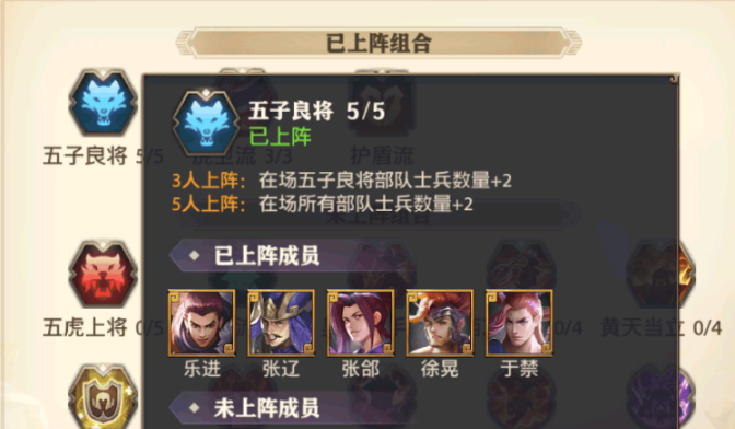 魏国阵容的核心思路就是肉坦抗伤加稳定输出,通过前排强大的生存能力为后排创造输出空间。五子良将和虎卫流是最常用的搭配,乐进、张辽、张郃、徐晃、于禁组成五子良将羁绊,直接增加部队士兵数量,虽然前期效果不明显,但后期士兵属性提升后收益巨大。虎卫流由曹仁、典韦和许褚组成,不仅能抗伤害,还能和乐进触发护盾流羁绊,进一步提升生存能力。这种组合让对手很难快速突破前排,而咱们的后排输出可以安心打伤害。