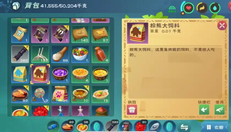 找到目标熊后,先将其血量降至30%以下,再用木棒攻击使其眩晕。熊的眩晕状态会显示特殊标志,可开始喂食准备好的饲料。喂食过程中,熊头顶会逐渐出现爱心图标,表明好感度提升。当爱心图标完全显示时,立即使用捕捉器完成驯服。不同熊的驯服难度和所需饲料数量略有差异,雪原熊需角色等级达到35级方可捕捉。