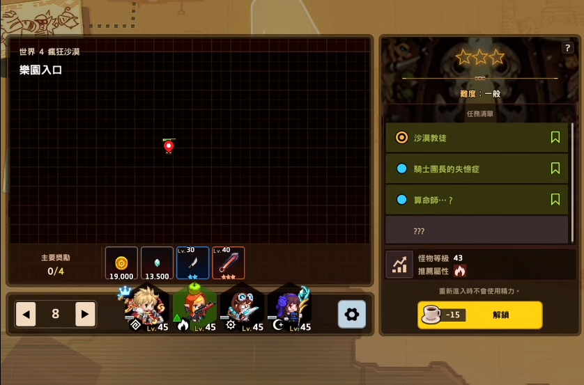世界4-4作为坎公骑冠剑中期的关键关卡,其核心难点在于地形限制与高爆发敌人的组合。该关卡主要出现狐狸和狼两类敌人,它们会在玩家开启宝箱时发动突袭,建议优先清理周边小怪再处理宝箱。地形中存在多处可破坏的障碍物,利用火盆等环境道具可对敌人造成额外伤害,但需注意火盆投掷有飞行轨迹延迟。