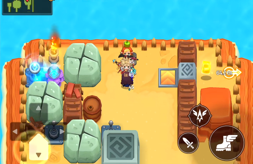 战斗策略上推荐采用穿墙攻击型角色,如水狐或土花等具备隔墙输出能力的英雄。水狐的专武技能可造成大范围溅射伤害,配合苹果、可可等辅助角色能显著提升生存率。若输出不足,可采取卡位战术——将敌人引至地图边缘的柱子附近,保持2-3个身位距离进行穿墙攻击,此方法对赤雪等角色尤为有效。需特别警惕BOSS的元气弹技能,红圈出现后应立即向对角方向移动,若操作不熟练可提前预判走位至角落。