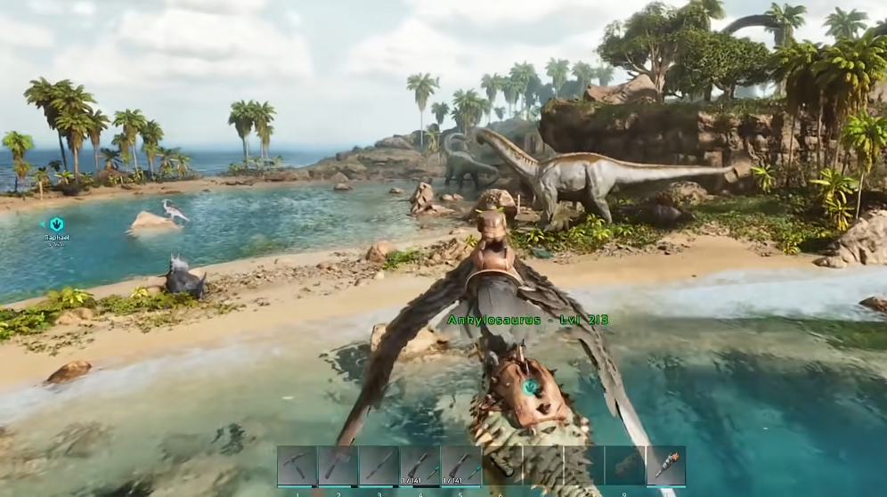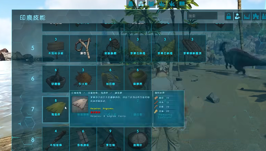基础工具如镐、斧必备,用于采集资源;麻醉箭和驯养用品可捕捉岛上有用生物如甲龙(高效采矿)或剑龙(采集浆果)。建议携带睡袋或床铺以设置重生点,避免意外死亡后长途跋涉。若使用飞行坐骑,需确保其耐力足够支撑往返行程,必要时中途停歇恢复。