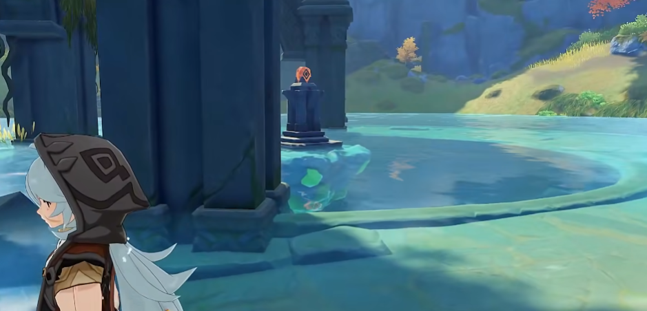 在璃月地区的绝云间下方传送点附近,太山府秘境的开启需要完成解密流程,其中关键步骤是让星星附身并点亮石龛。首先传送到绝云间下方的传送锚点,解密机关位于角色正前方,需击败守卫机关的一群丘丘人。击败后启动机关,水位下降露出圆形平台,平台上分布着三个需要点亮的基座。