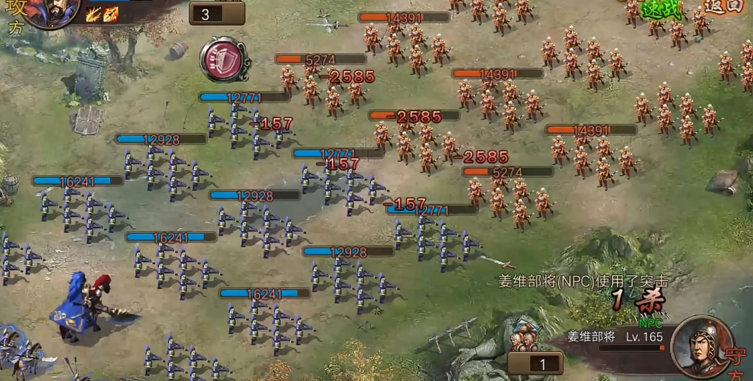核心难点在于敌方武将的特殊战法机制与高额溅射伤害。前三个部将无战法但具备1打4排的平砍效果,而主将姜维拥有万箭齐发战法,可对五排造成致命打击。通关需合理搭配觉醒武将、调整战术克制顺序,并利用地形与战法释放时机削弱敌方兵力。