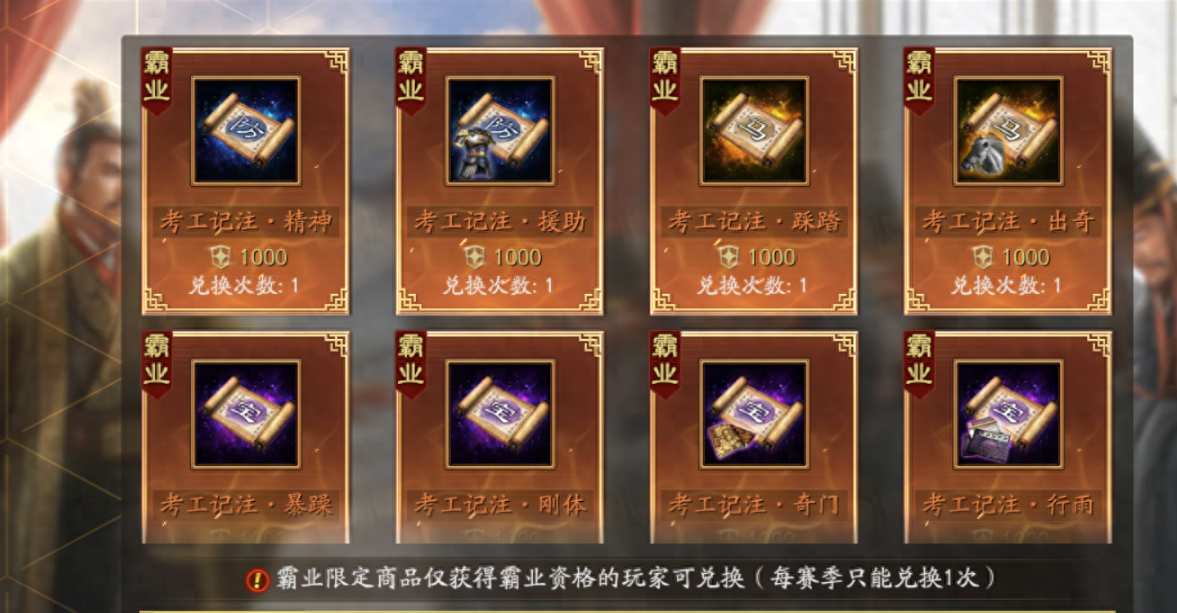 功勋的获取主要靠成就评分和战场活跃度。成就尽量做到25000分以上,能拿到600多功勋。战场方面要多参与攻城、翻地和拆耐久,战功打到100万就够用,超过300万收益会大幅降低。记住别反复刷同一座城或同一个玩家,这些重复操作不会计入功勋。赛季结算时功勋会自动转换,不用手动操作,但记得在结算前把该打的成就和战功打完。兑换装备特技时会清除原有特技,一定要选对目标装备。霸业限定特技每个赛季只能换一次,建议优先换援助甲和踩踏马。非霸业特技中灵动甲和好学宝物的性价比最高。