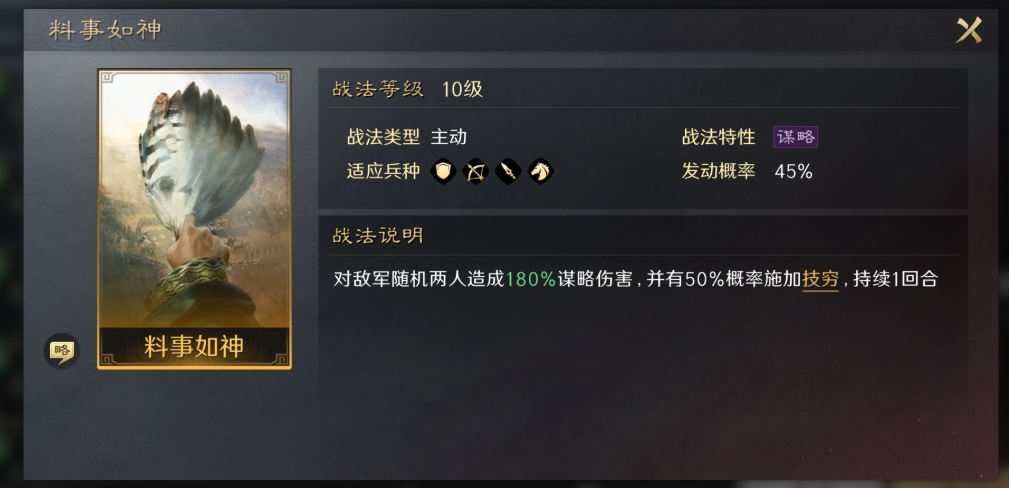 但在某些缺伤害的平民阵容里,让他补一点输出也是可行的思路。这时可以给他带斗智或者料事如神这类谋略输出型A级战法。因为他的智力成长还算可以,加点主统率副智力,或者直接全智力,也能打出不错的伤害。不过这么玩的前提是,你的队伍里已经有其他稳定的治疗或减伤手段,不然可能会有点脆。这种搭配算是剑走偏锋,主要用来补充伤害短板,或者针对性地打击敌方智力较低的武将。