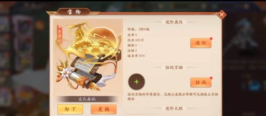 具体到宝物选择,有几个方向可以考虑。一个是强化他的输出爆发,比如选择能提升攻击力、暴击率或者破击率的宝物。典韦的怒气技能伤害很高,如果能搭配增加暴击的宝物,比如一些兵书类,能在关键时刻打出成吨伤害。另一个方向是补足他的控制或者生存,比如选择带有命中、生命加成或格挡效果的宝物,这能让他更稳定地打出眩晕,并且站得更久。宝物系统里,左槽和右槽可以各装备一个,通常一个偏输出一个偏防御或功能,你可以根据自己典韦在阵容里是更偏向主攻手还是副坦来调整。